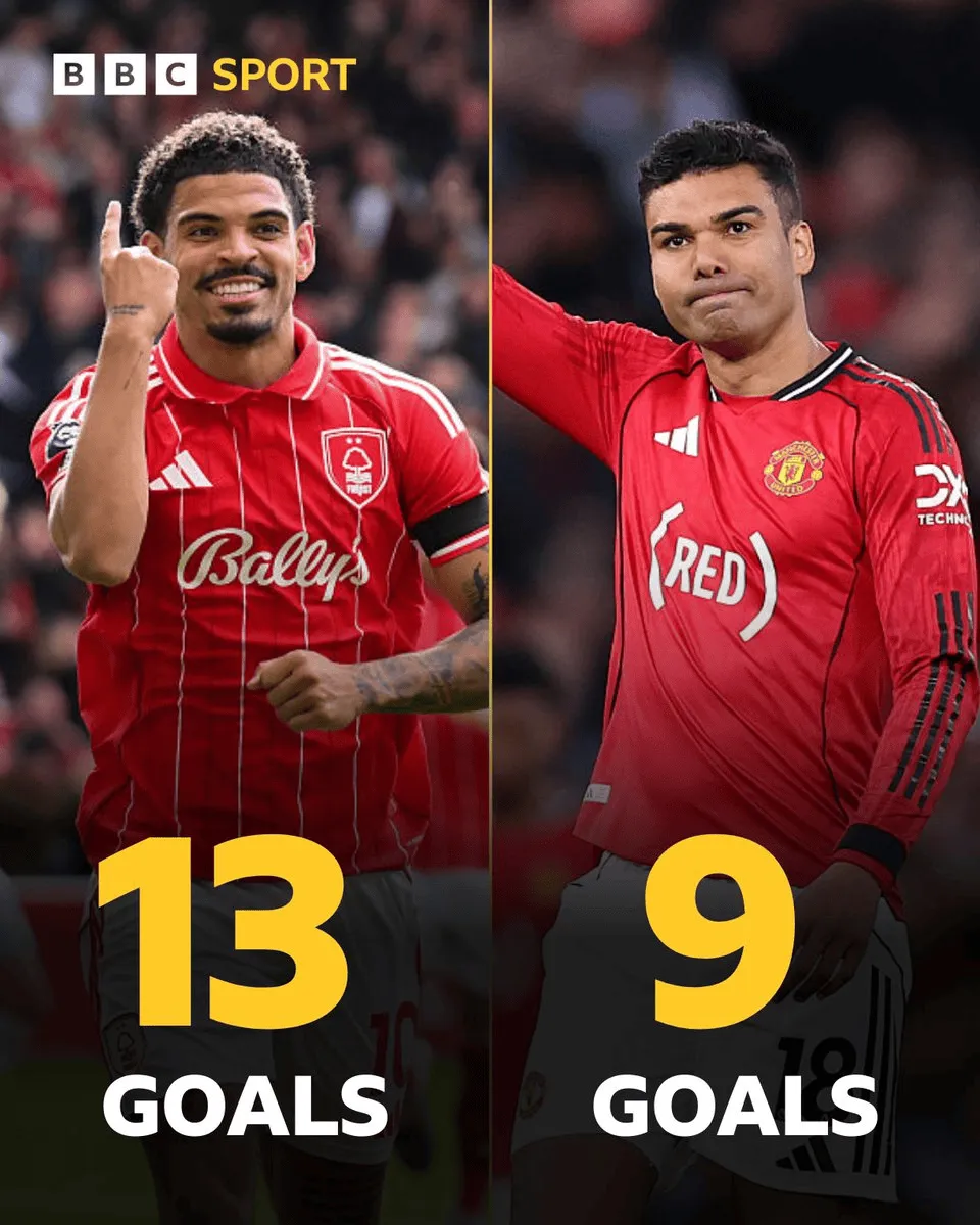 数据显示,在本赛季英超中场球员进球榜上,只有诺丁汉森林的吉布斯-怀特(13球)进球数多于卡塞米罗。
